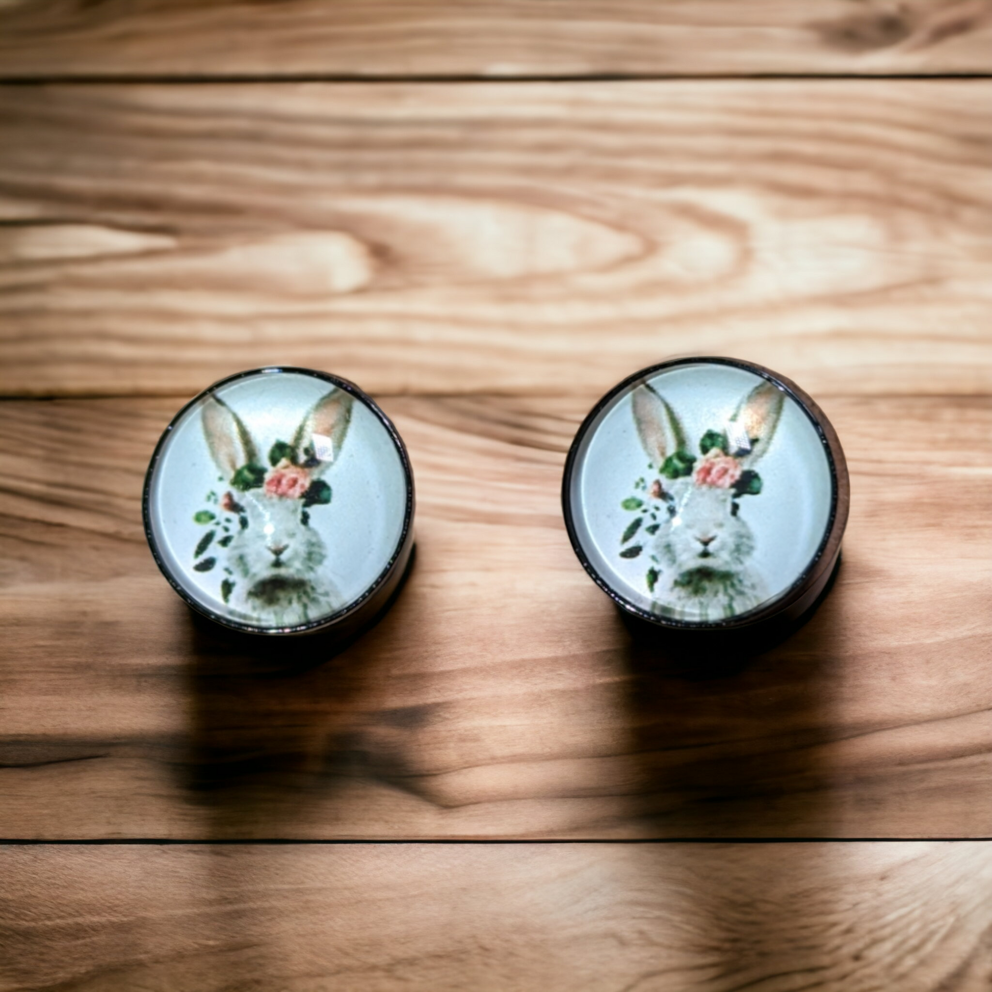 Supports et tiges en acier inoxydable. Cabochons en verre 12mm.